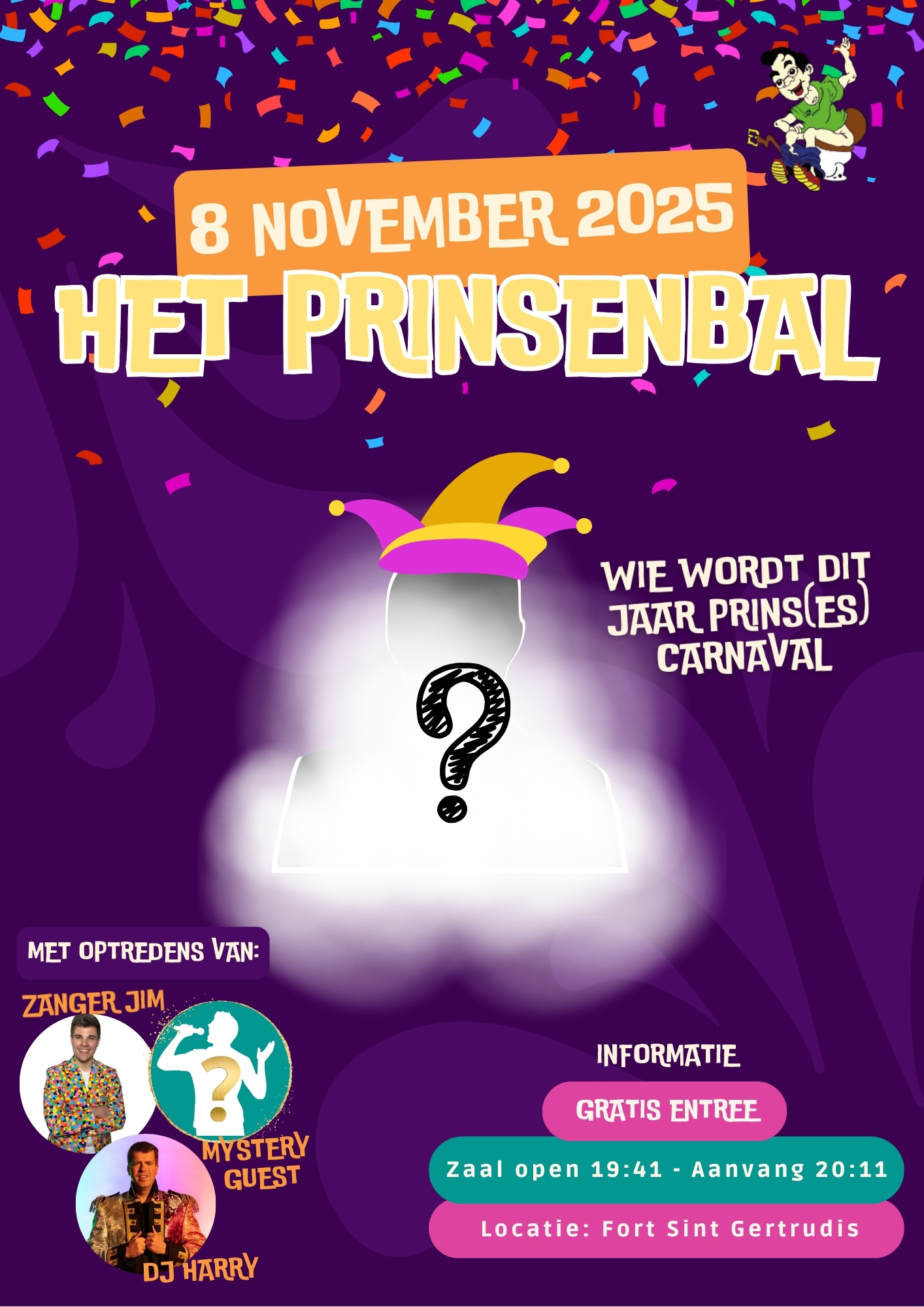 Op zaterdag 8 november vindt het Prinsenbal plaats in Fort Sint Gertrudis in Geertruidenberg. Tijdens deze avond wordt op een spectaculaire wijze de nieuwe raad én de nieuwe Prins of Prinses van Potteschijterslaand bekend gemaakt.